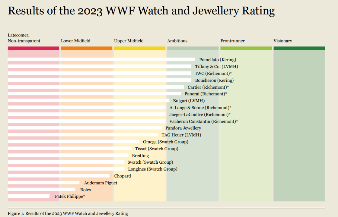 When it comes to luxury and jewelry brands, WWF releases a rating for 21 brands.