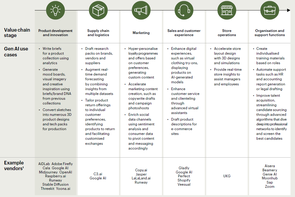 Gen AI’s Creative Crossroad: 73% of fashion executives said generative AI will be a priority for their businesses in 2024, but just 28% have tried using it in creative processes for design and product development and only 5% believe they have the capabilities to fully leverage it, according to the SoF 2024.