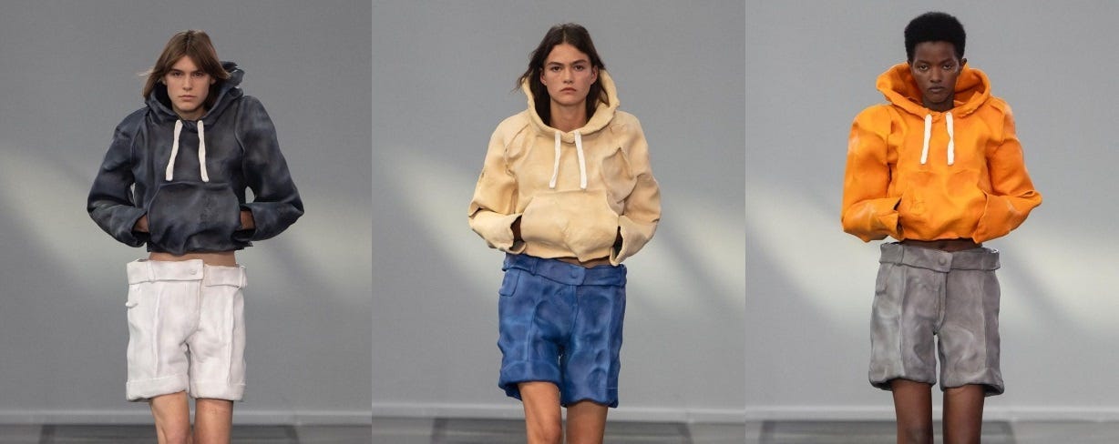 In London, Chinese designers steal the spotlight at London Fashion Week, and JW Anderson innovatively transforms hardened plasticine clay into wearable hoodies.